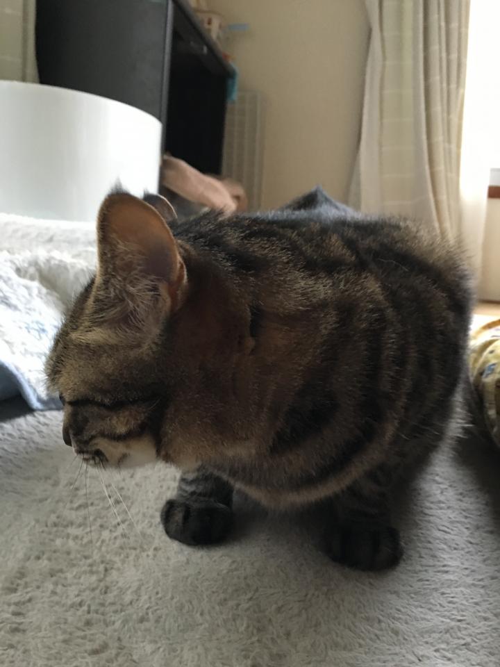 掃除機から逃げ惑って二階に帰って来たゲン。