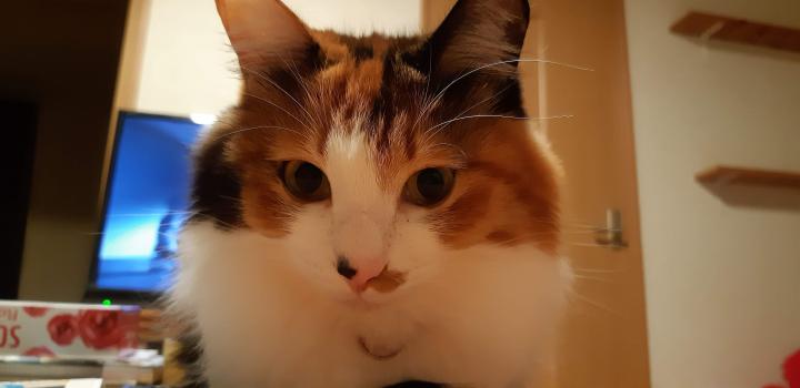 キリちゃん、体重は3.4kgとそこまで大きくないのですが、長い毛と柄の出方で後ろ姿がいわゆる「ムチムチしてる」んです😆
