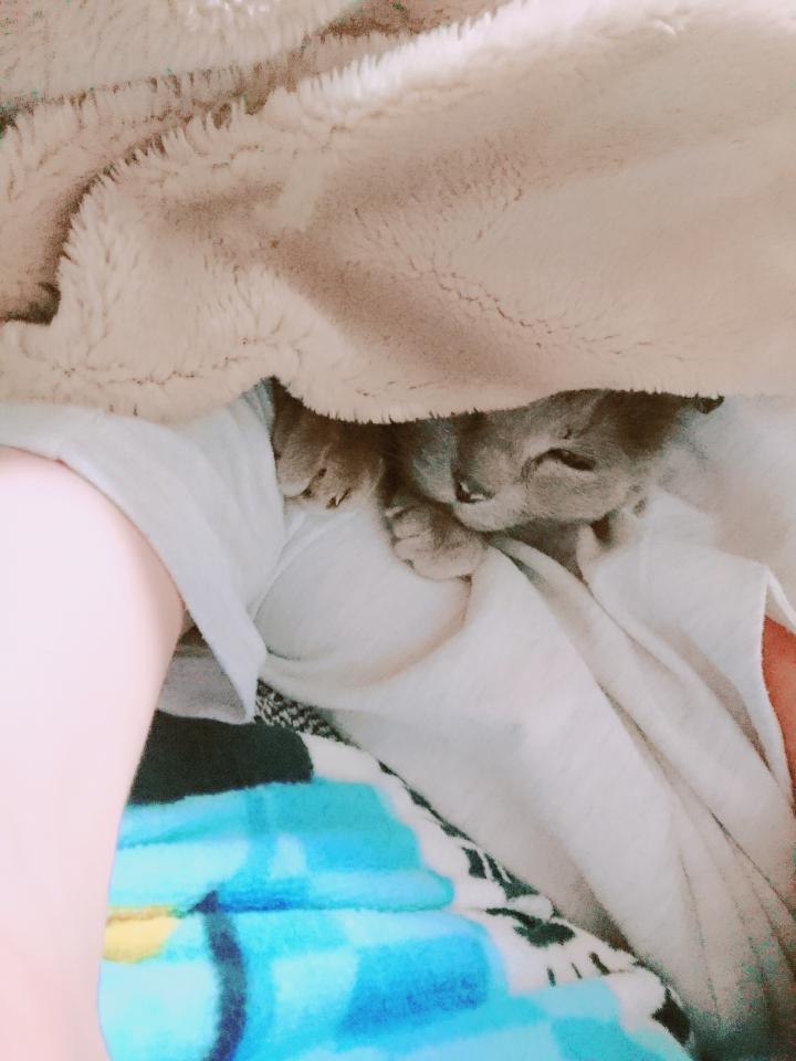 私が帰省したときにはいつも一緒に寝てくれて、布団の中にも入ってきてくれます💓
