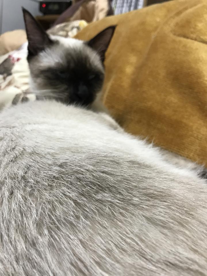 グルーミングしてたのに、蹴られて、ズーは落ちて場所移動琥珀も場所移動