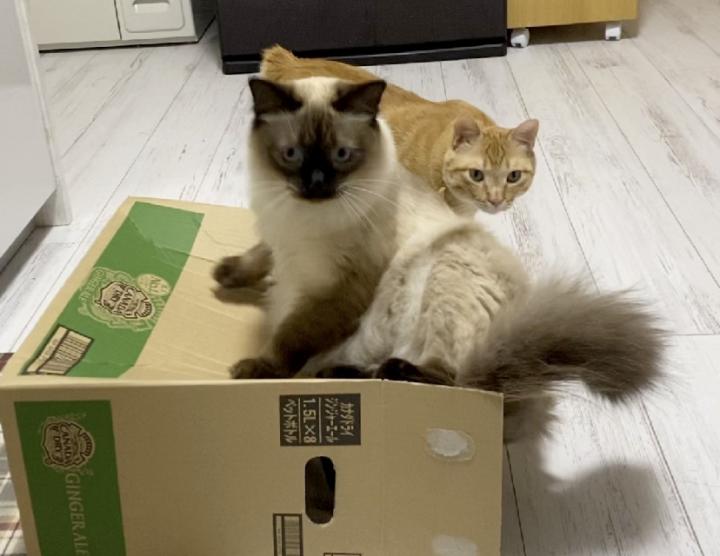 そんな遊びにただのダンボールが耐えられるわけもなく、上部がガッツリと凹んでいました