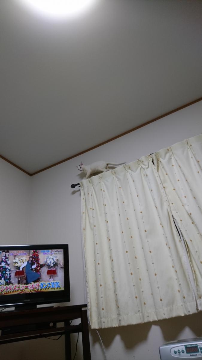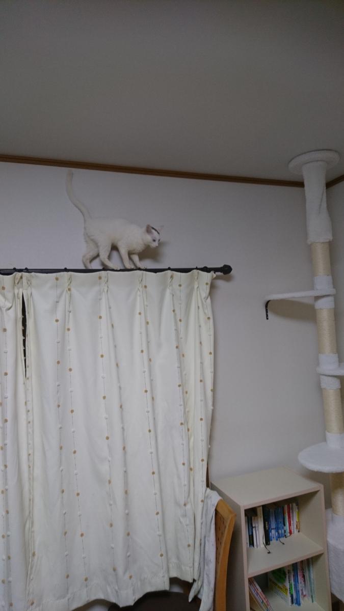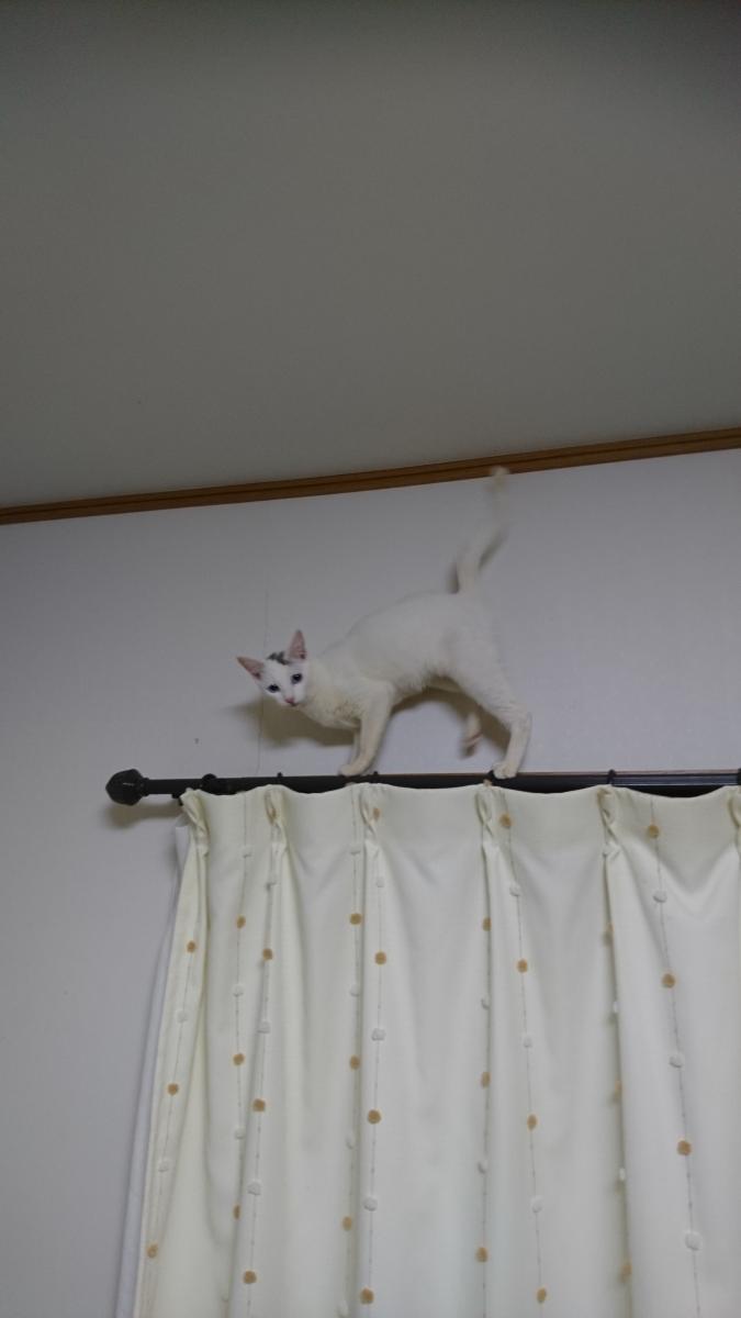 こっちを見ながらニャーっと抱っこをせがんでくるので抱っこしようとするとカーテンレールにしがみつき離れず(・・;)
