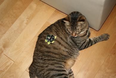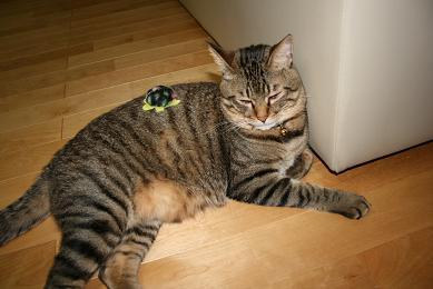 父さんが「ゆず 亀吉が玄関に落ちてたゾ」っと親切(?)に、背中に乗せてあげたら、ず~~っとこのままです^^;
