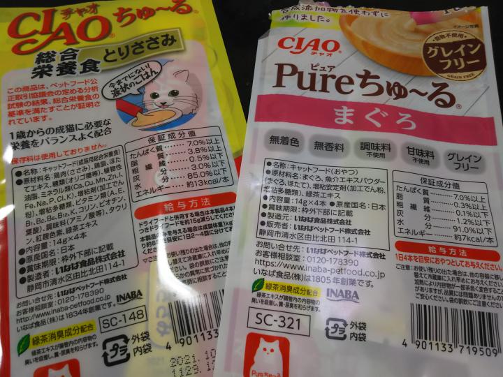 pureちゅ~るを「グレインフリー」を「グルテンフリー」だと思い込んでました😅(笑)