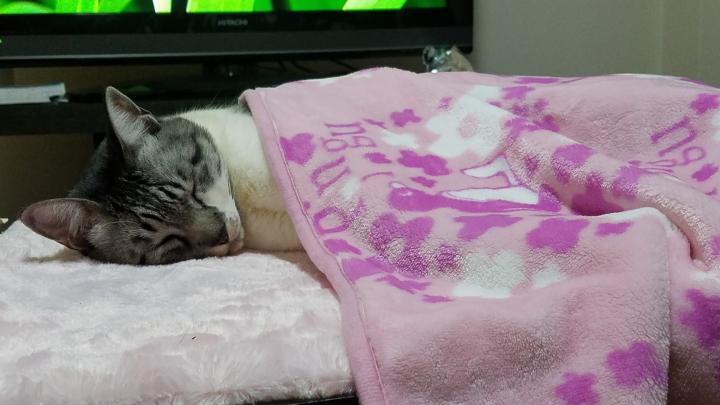 ゆずの毛布にいいゎとかけてあげたらお気に召したようでめっっっちゃよく寝ますwスヤスヤ爆睡ですw
