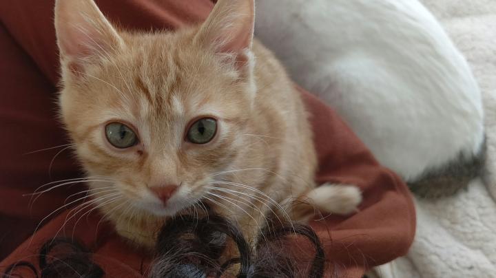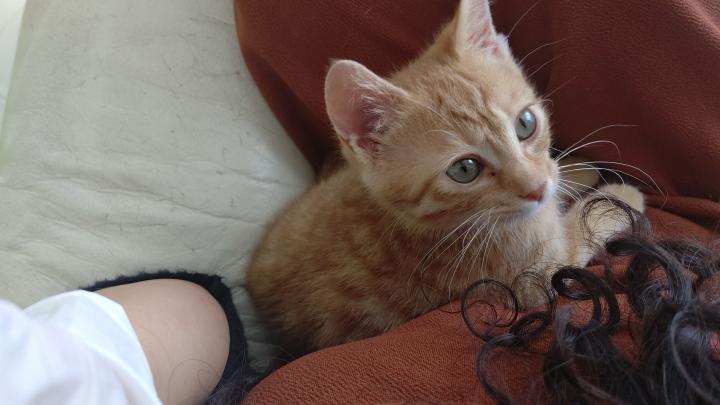 作業を終えてソファーに座ったらすかさずチビッ子が乗ってきて私の手にじゃれてきます🎵
