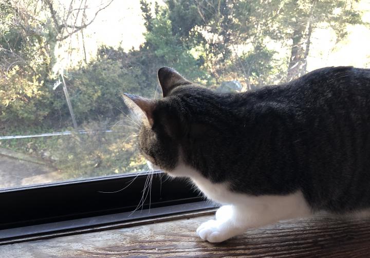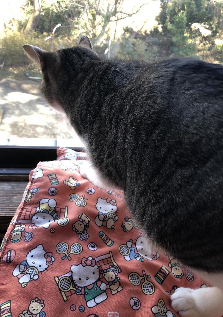2階の窓から外をみている『ぼん、あられ』しか見たことないんです。