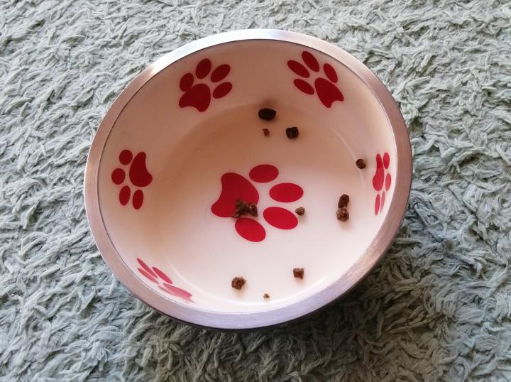 頻繁にこれぐらい残します。ドライフードのかけらです。