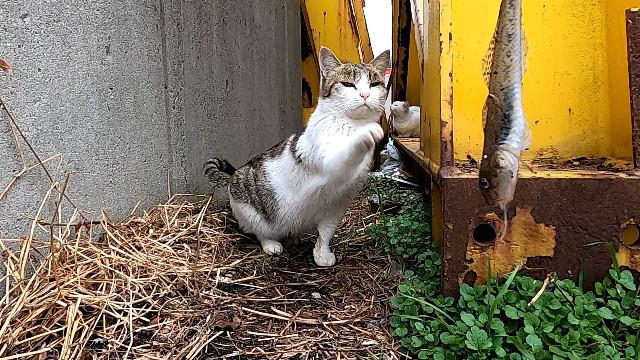 【野良猫】捨てられ震えてボロボロでしたがご飯をいっぱい食べました 捕獲保護にトライしてます