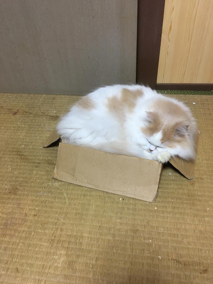 やはり箱の中が気に入りまして、こうした箱を幾つか置いてます。さて、所代わり年末はマコちゃんの姿も観に行きましたが、こちらも気に入りの場所でお休み中