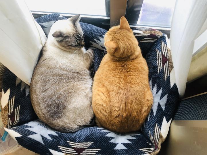 先ほど見たら、茶々とユキが一緒のベッドで寝ている😻