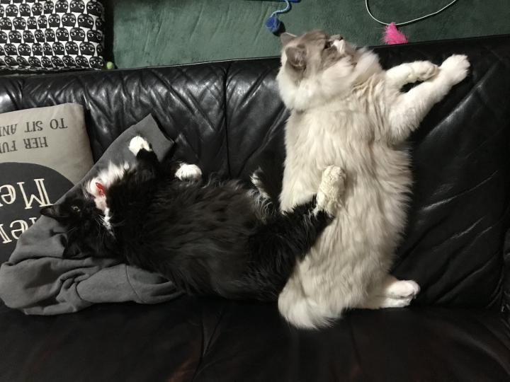 ぶす子もゆきちも元気いっぱい、相変わらずつかず離れずの距離で毎日遊んでます🐱