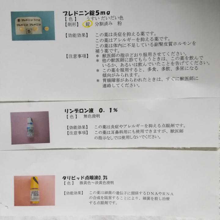 現在の飲み薬と目薬 薬1日1回 目薬1日4回