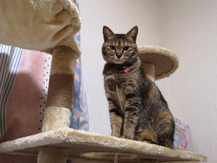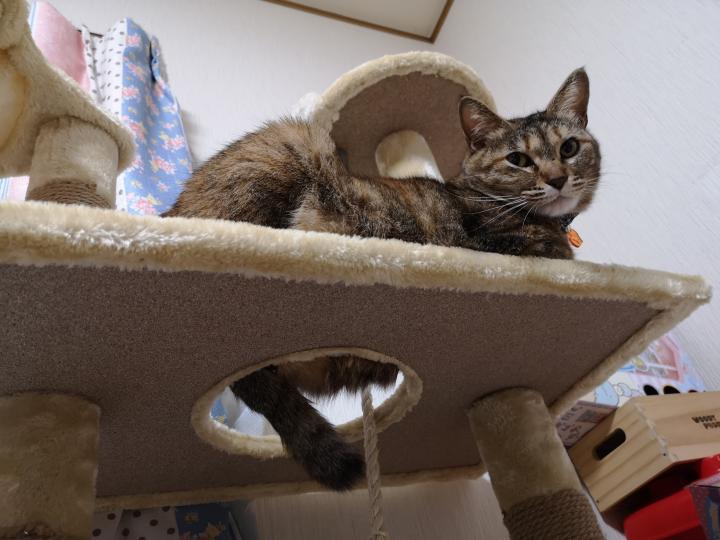 のんちゃんが、自分でキャットタワーに乗った!