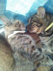 昨夜なんか首が赤くなるまで舐めた後に、私の肩に頭のせて添い寝。