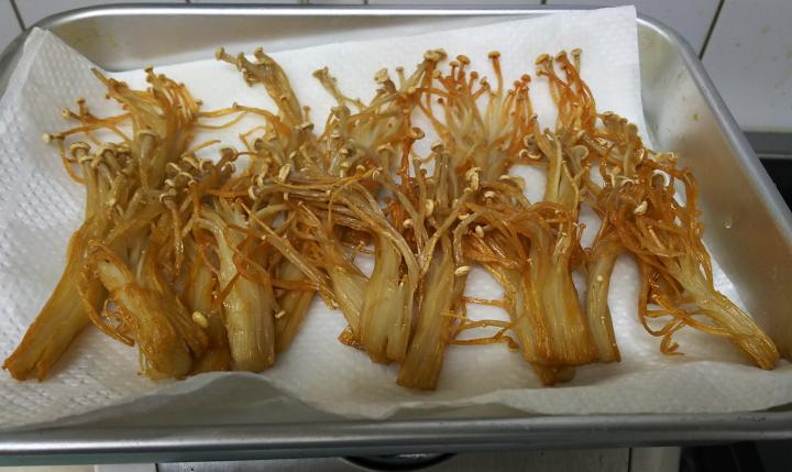 😊ネコジで聞いた話からイメージして作った、エノキの素揚げ🍳