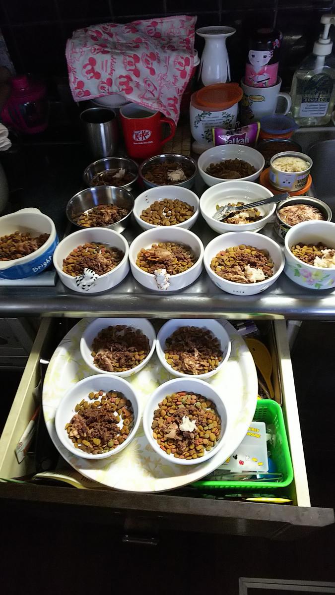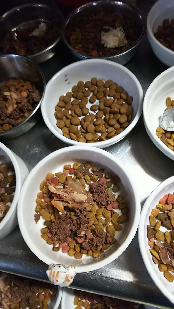 現在 お二人様😺が ご利用されていますので朝晩のご飯を出して