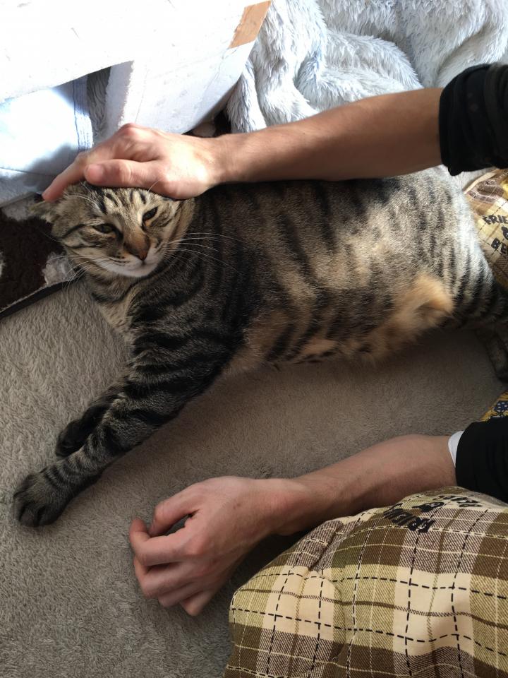 こんな感じでお腹ナデナデされてゴロゴロ言いながらウットリしてました🤣