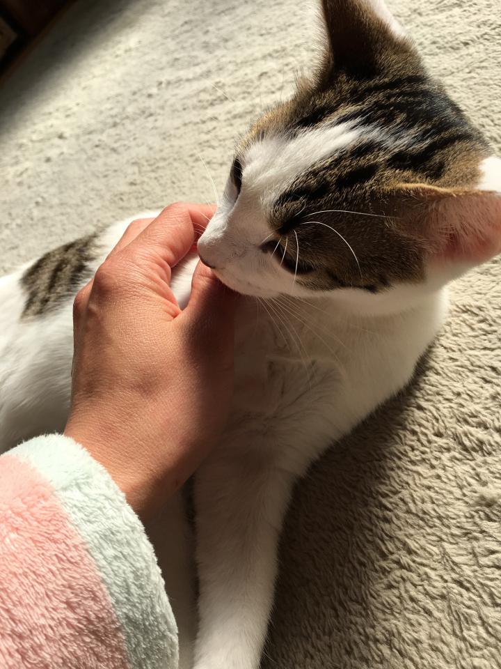 日向ぼっこしながら主人にナデナデして貰って気持ち良さそう☺️
