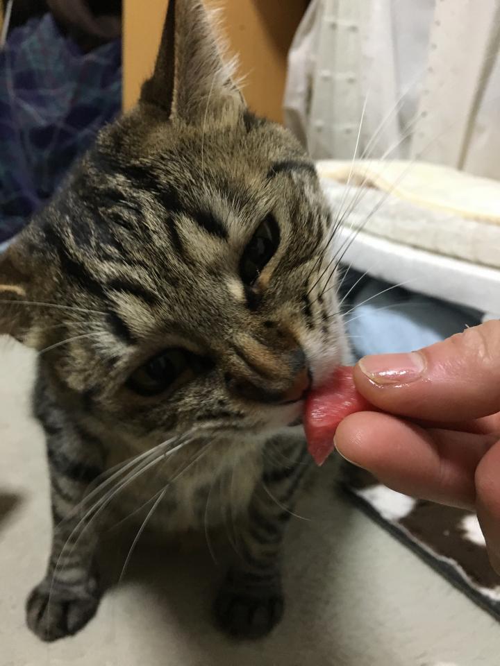 ゲンの頑張りは主人がとても嬉しかった様で、お刺身をご褒美でお裾分け❗️