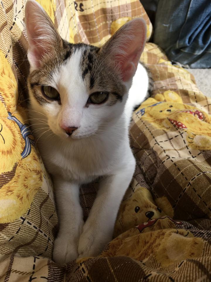 この子、添い寝して抱き抱えるみたいにしながらナデナデするとゴロゴロ凄い言うよー😅と話したら、とりあえず私と添い寝しているゲンの表情を確認。
