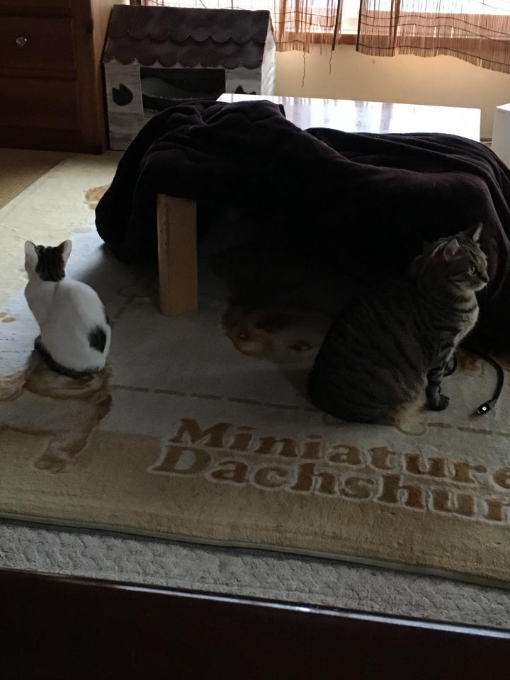 一階コタツには入るけどまだ抵抗があるゲンの為、出勤前は一箇所だけ出入り自由に出来る様にしてあります🙂