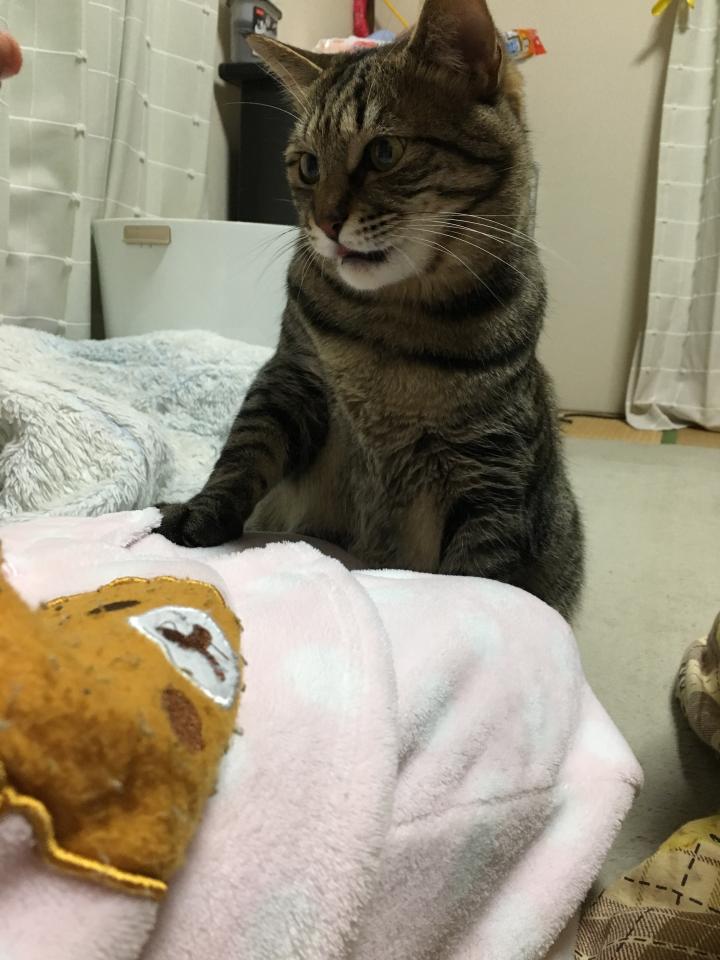 毎晩ミルクが添い寝をしてくれて、いい加減慣れて来たゲンにゃんです( ̄∇ ̄)