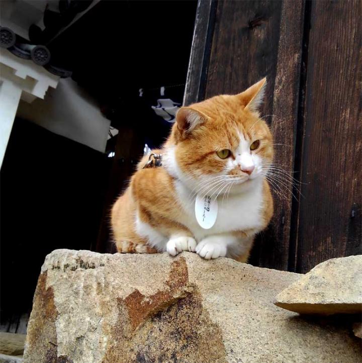 平成30年7月にこの地方を襲った豪雨災害後に城の三の丸にて発見されて、世話されているうちに城に居着くようになり「城主」の呼び名が浸透、その後元の飼い主さんが見つかったんですが、城に居着いてしまったことから観光協会に譲渡し、2018年12月16日に正式な猫城主となったんです(wiki調べ)