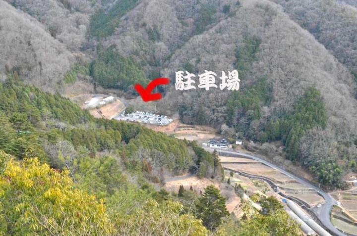 この駐車場に車を置いて来てます。けっこう高い場所に天守があるのが判りますね。
