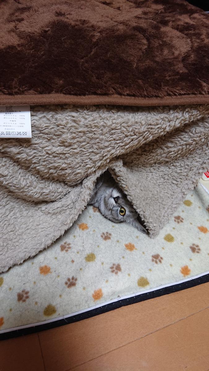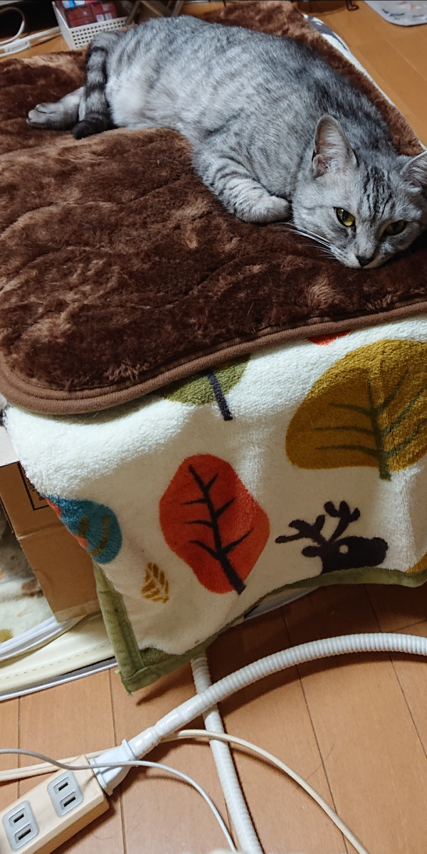 そんな中、あったか電気マットの上に段ボールを置き毛布で囲った猫アパート「ニャオパレス」を旦那さんが建築!