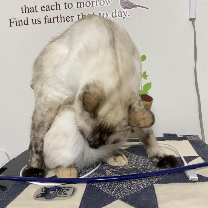 今まで使っていた中身を取り出し、裏返しにして置いておくといつの間にか風牙が使っていました