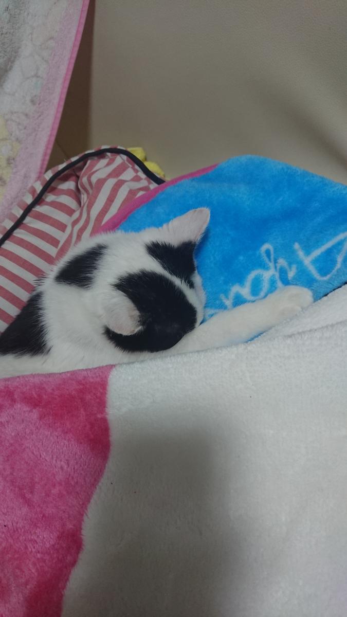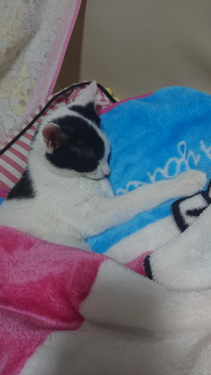 今までゲージのベッドでしか寝てなかった雷ちゃんが、遂にソファーの上のベッドで寝てくれるよぉになった😊