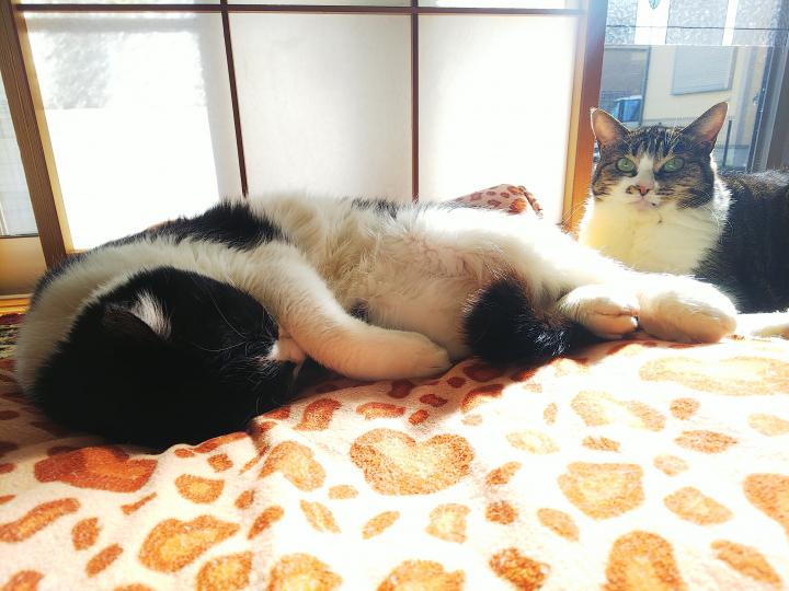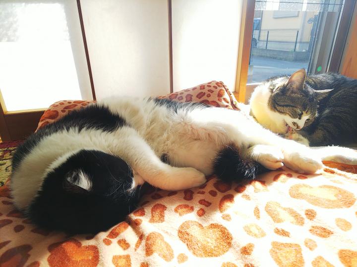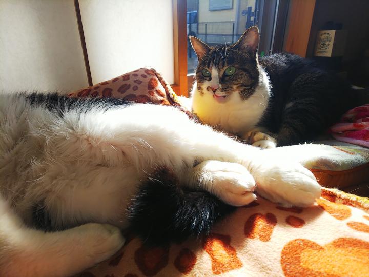 サスケ:「母ちゃん、ムニャムニャ。。。 眩しいなぁ、パウチ食べたい。。。ムニャムニャ」