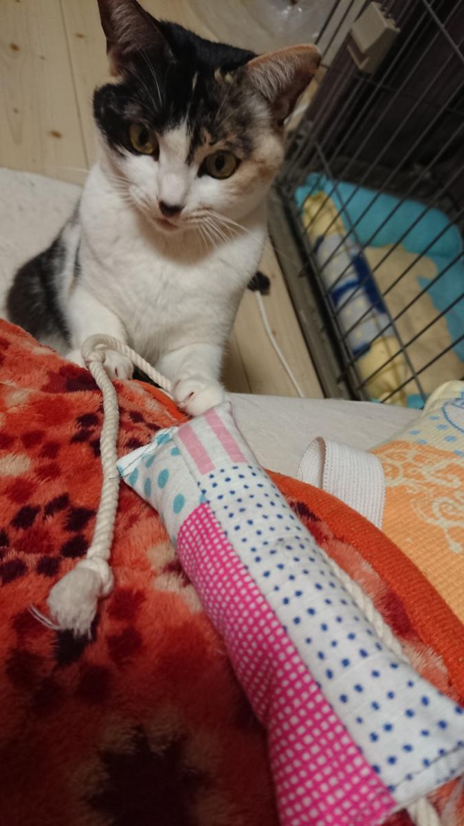 持ってきたおもちゃをわざと無視したら爪で攻撃をされました。