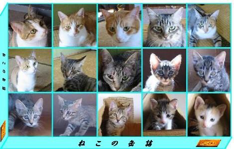 上段左から、ニャニャ、タム、シェリー、アキ、メグ