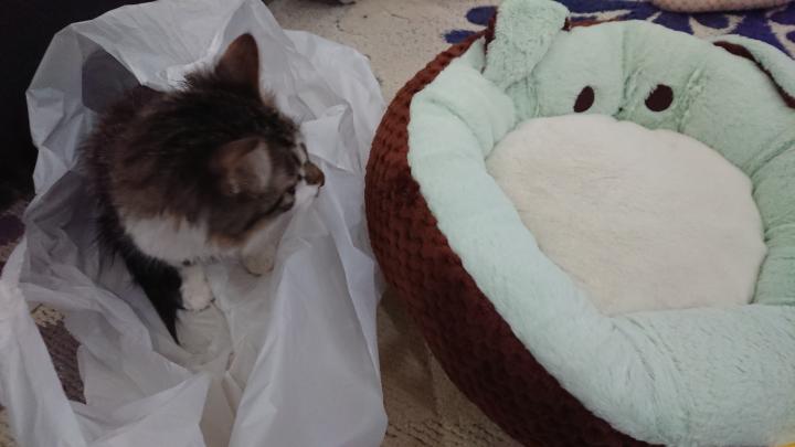 夜中にミルク、病院で貰ったお腹に優しいというウエットのフード、カリカリ数粒食べました✨