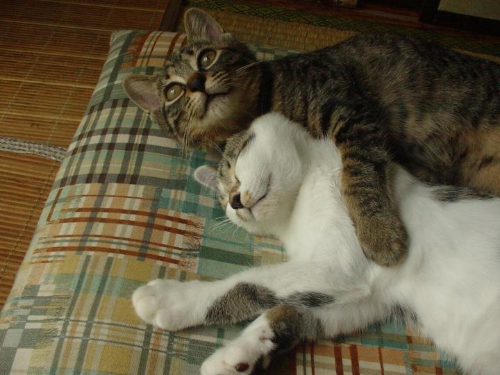 黒いほうが妹のくるみ。ぶちが姉さんのわさび。