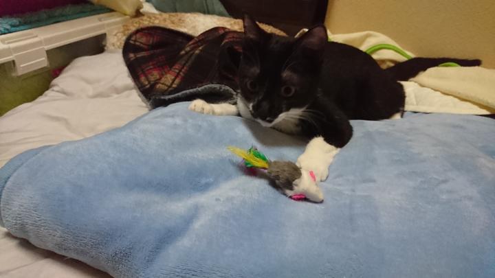 れいちゃん、くしゃみのため今日もフリータイム中止です、メイメイは、🐀のオモチャで、遊んでいます。れいちゃんの投薬の時は、お腹をマッサージしてから飲み薬の時間。背中をマッサージしていたら、毛が硬い❗😸😮お腹は、柔らかいなぁ~⤴️😻背中は、成猫ちゃんみたいです💨💨💨💨いつの間にか、毛も変化していましたね😉