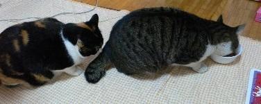 食いしん坊の小梅は大好きなマルのごはんを覗き見・・・