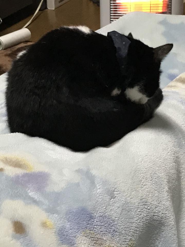 写真は旦那氏の上に乗って毛繕い中のもみ。
