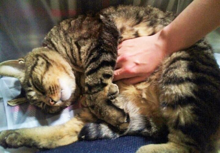 呑気に寝てる君…お腹をモフモフすると、もっと寝るよ♪