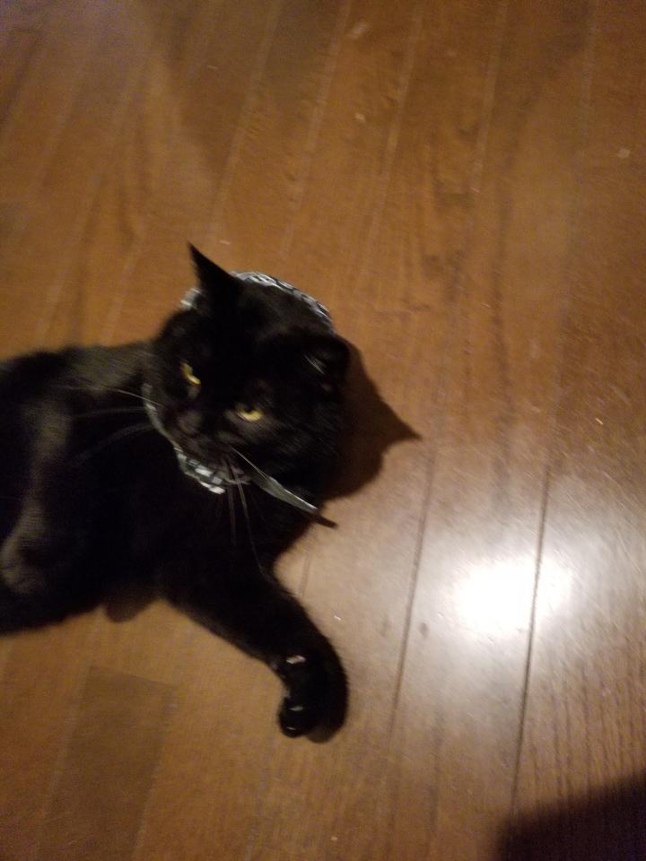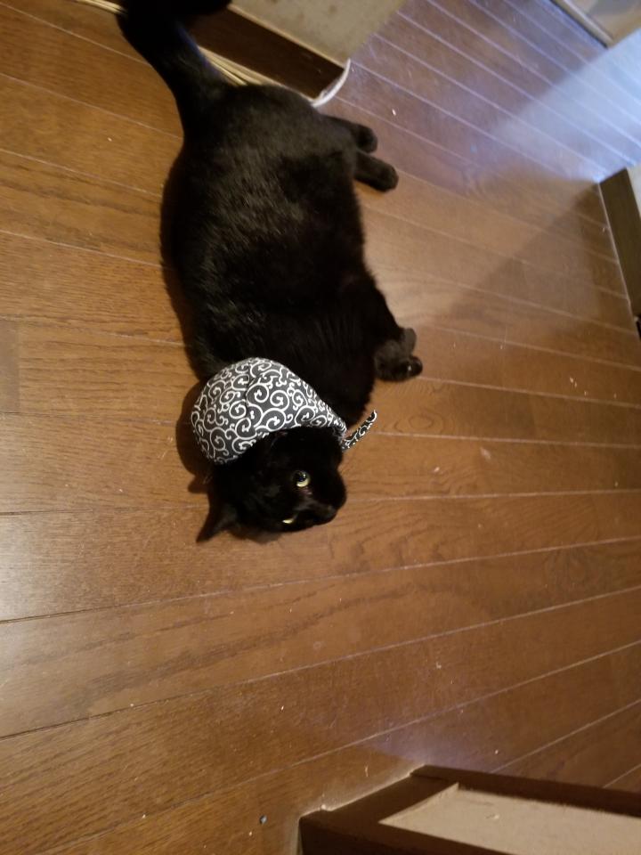 クロは頭に被り物させても首にシュシュをつけても嫌がらないので、リアルクロネコヤマトごっこをして遊んでみたら…