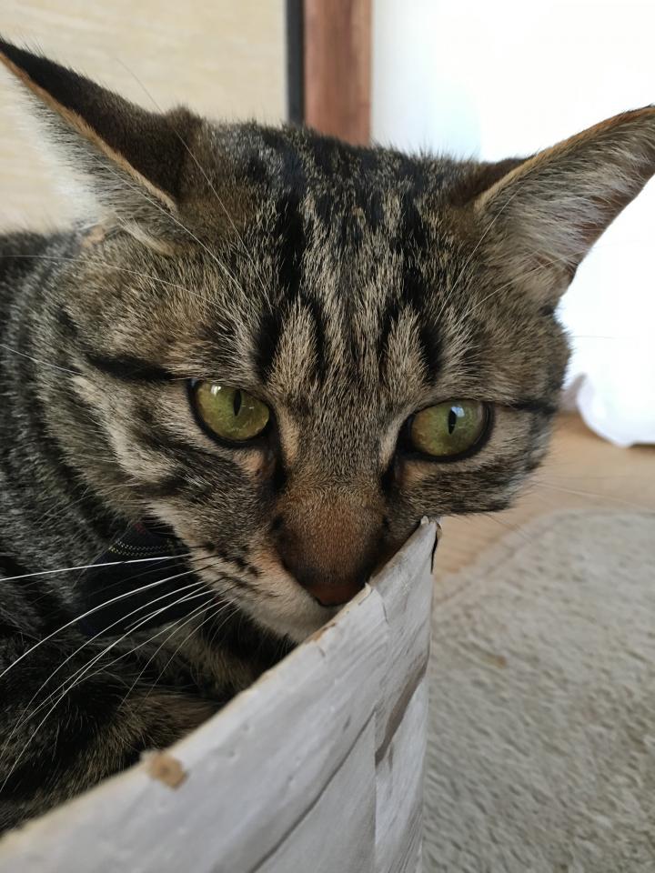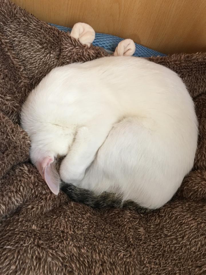 ゲンを抱っこしてる間、ミルクは丸くなってました。