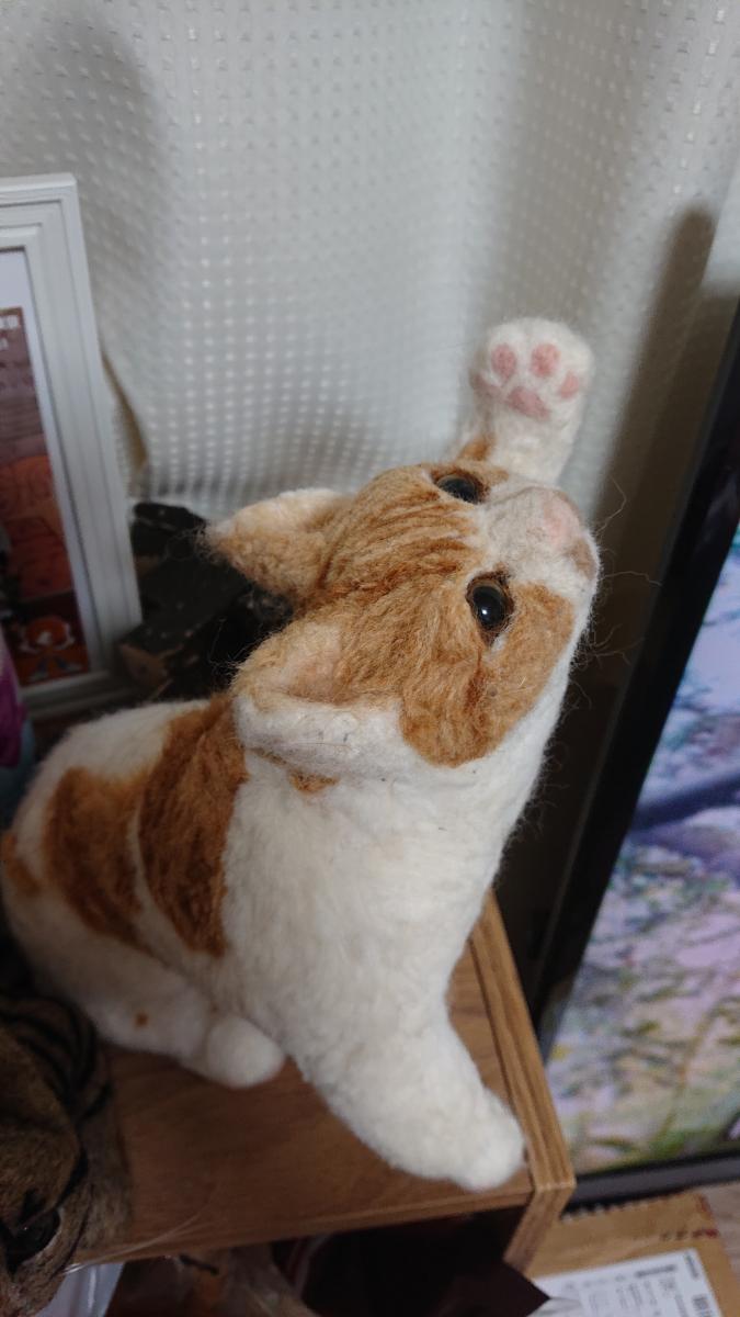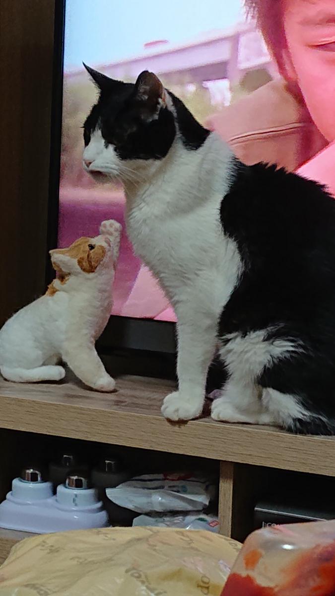 形になり始めたトラに、17年3ヶ月、トラが来て旅立つ日まで、片時も離れずにいたカイ君が、こうやってトラに挨拶し、少し傍にいるようになりました。