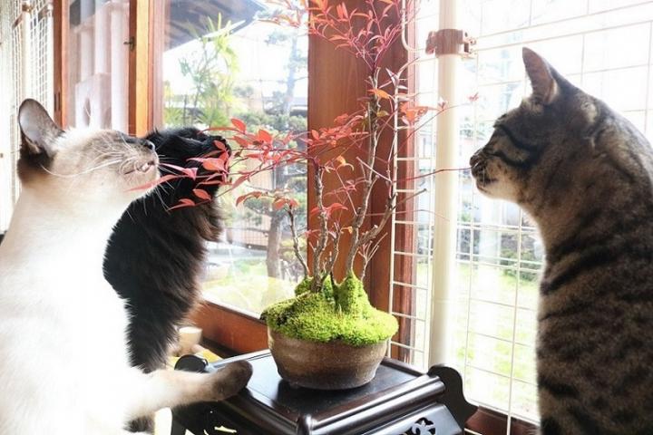 みんな寄ってきてアッという間にまた外の盆栽棚に・・・