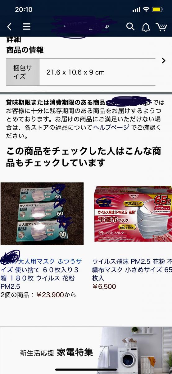 他には、大手総合スーパーのマスクもこんな値段で売られていました。