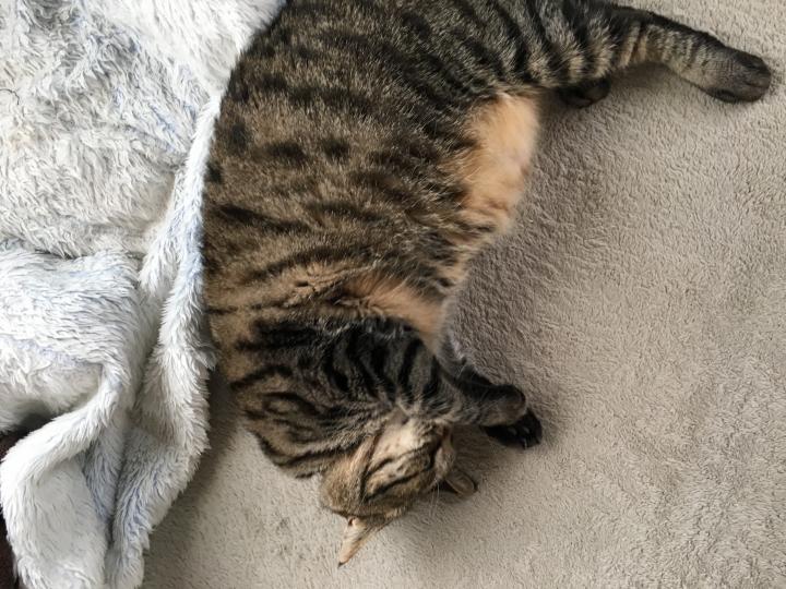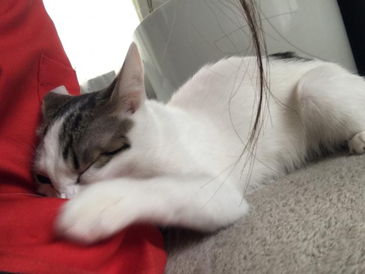 発情期ピークは私の布団で一緒に寝なかったのですが、今日からはまた添い寝が始まる模様で、今既に隣で私にベッタリくっついて寝ています(´-ω-`)