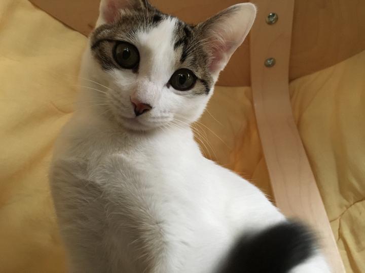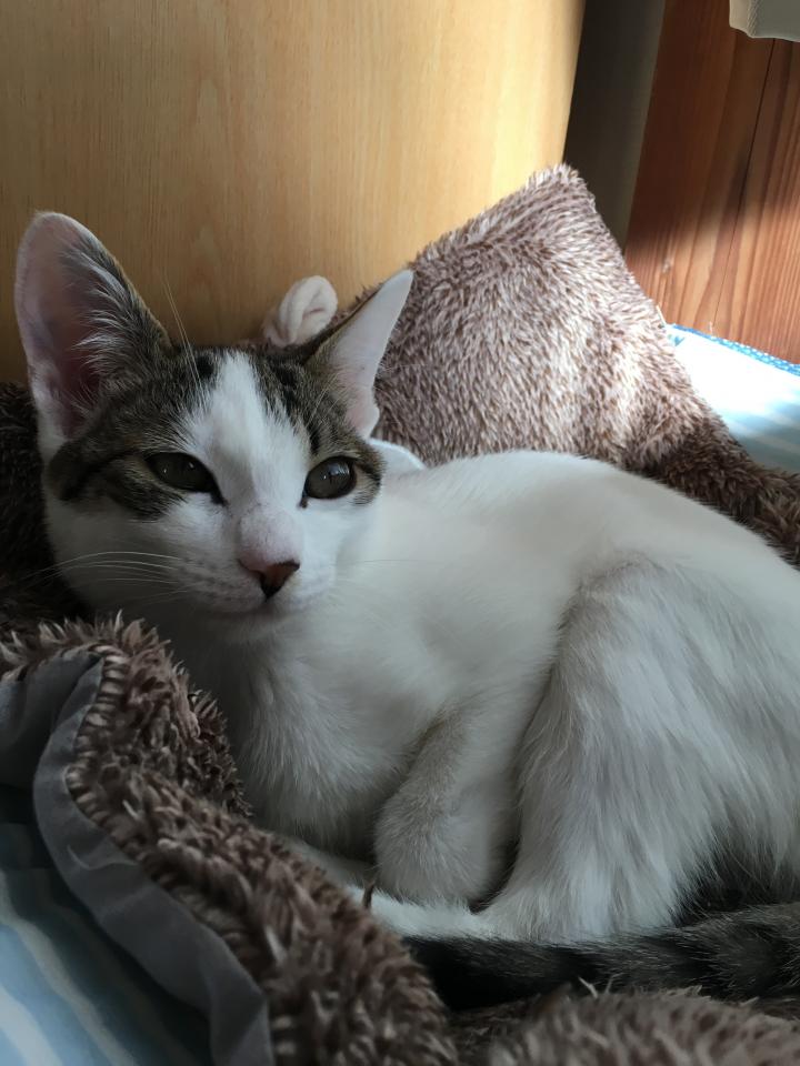 ミルクは確かに我が家しか知らない子なので、知らない人や車等に臆病になる事があるけど、でも人にすぐに慣れて一緒の布団で寝たりする事が出来る子だし、年齢もまだ若く、過剰グルーミング等の心配のない子。
