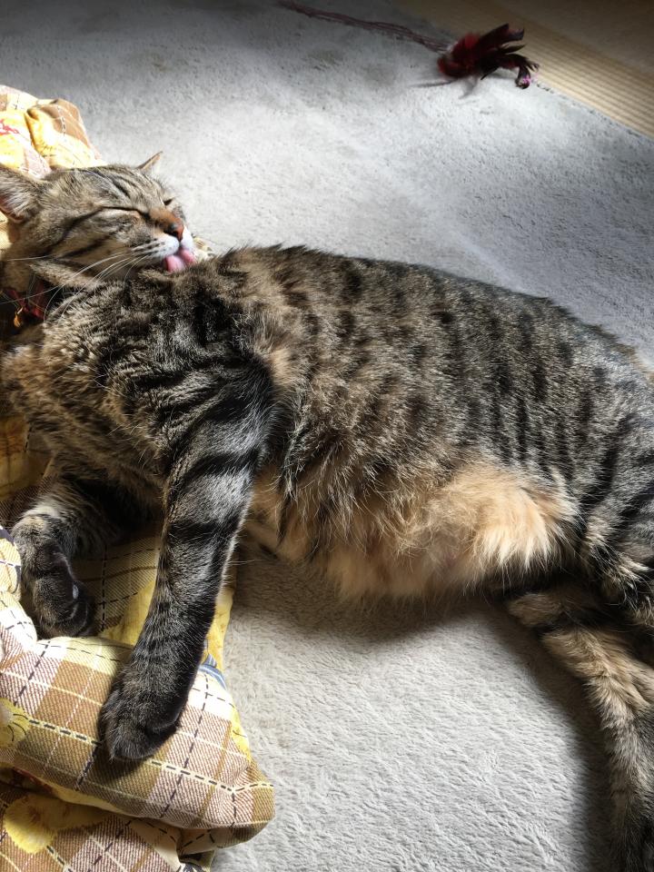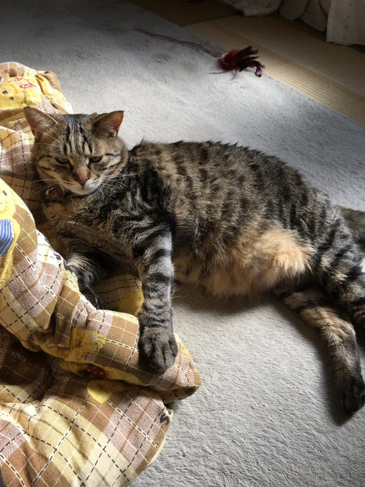 ミルクが帰宅して満足したゲンさん、幸せそうに日光浴していました🍀