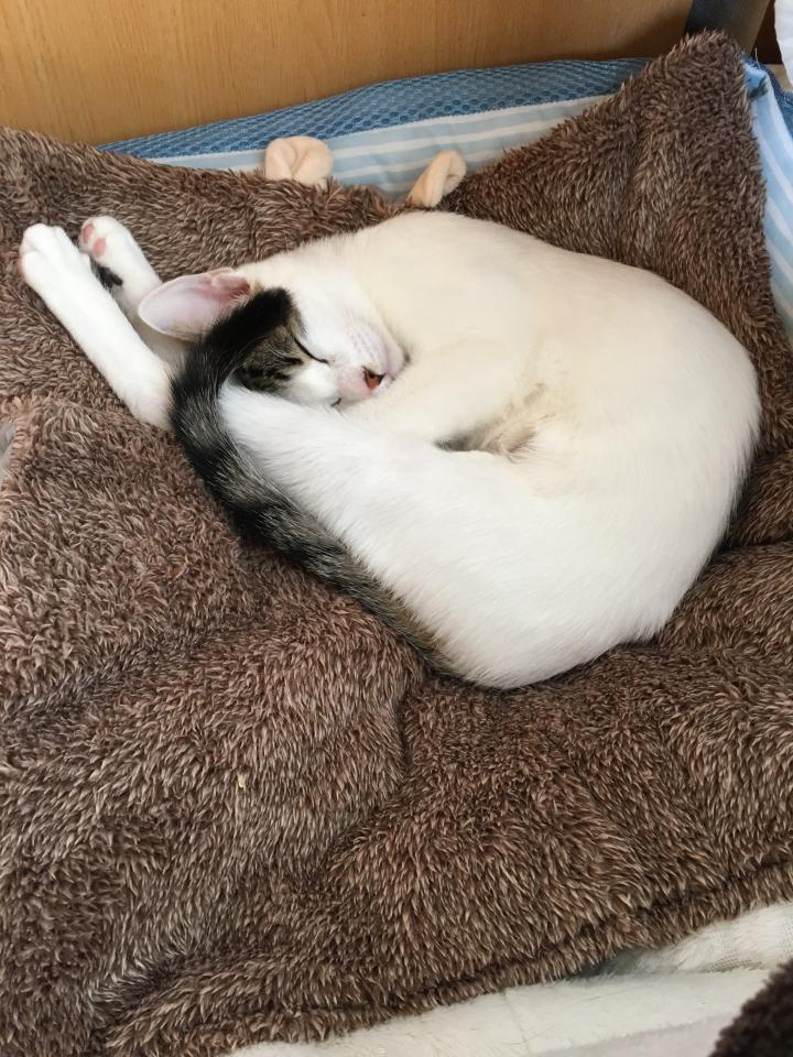 ミルクも家に帰宅し、ご飯とトイレを済ませ安心したのか、ミルクもお休み中☺️